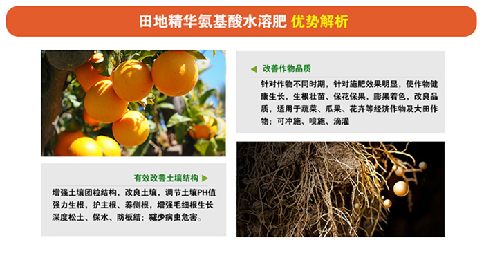 田地精華含氨基酸水溶肥,是氨基酸與鐵、鋅、硼等螯合微量元素融合在一起研磨而成的葉面肥。根據(jù)作物生長階段所需營養(yǎng)設(shè)計(jì)配方,用于葉面噴施,省時(shí)省力。